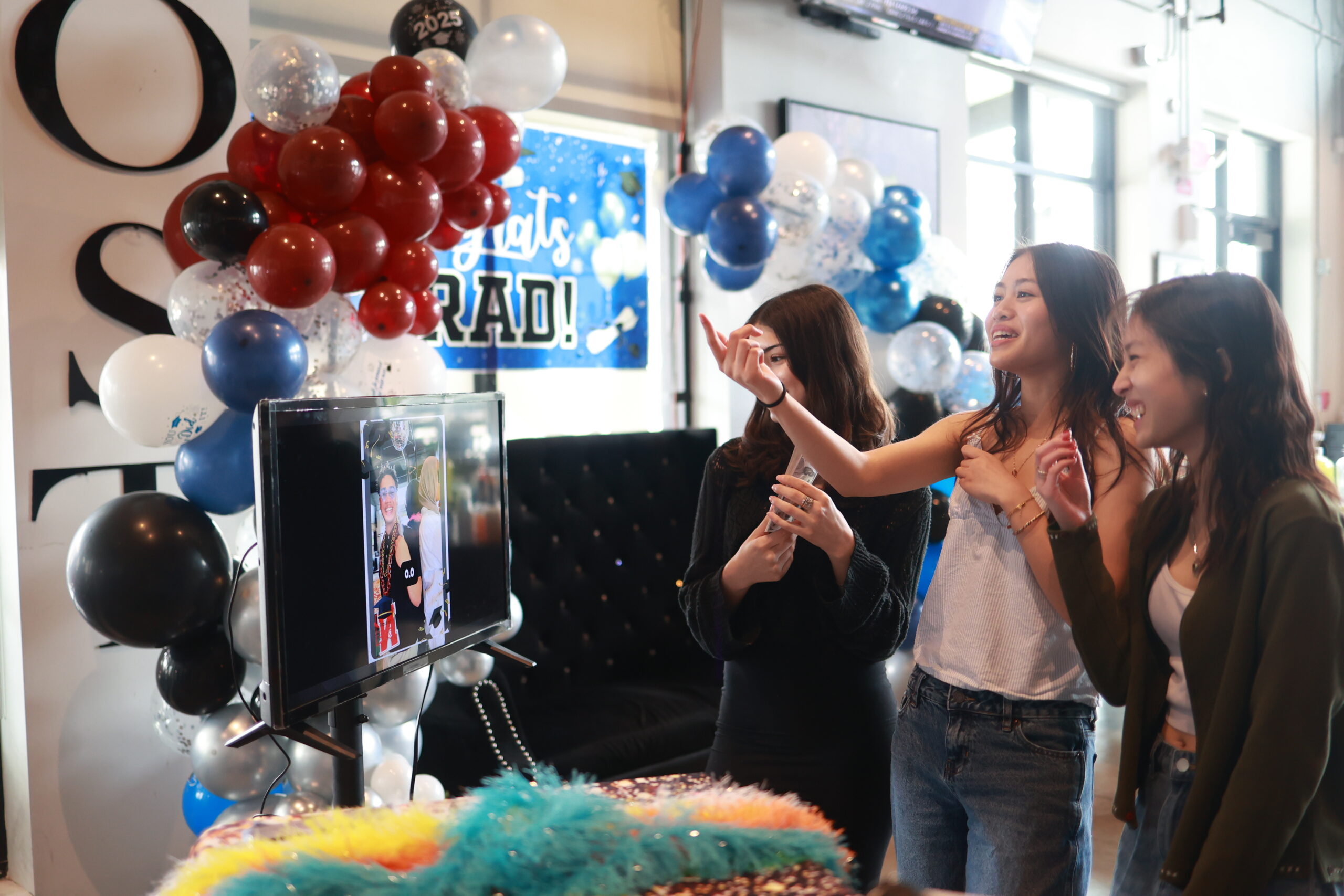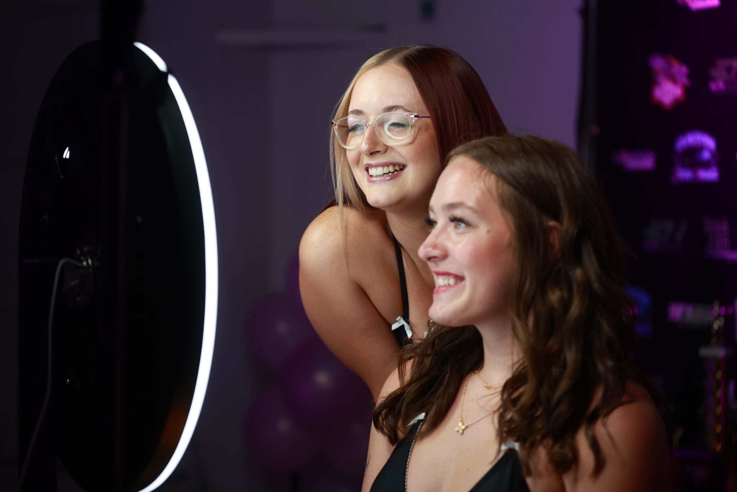 Young girls in front of photo booth