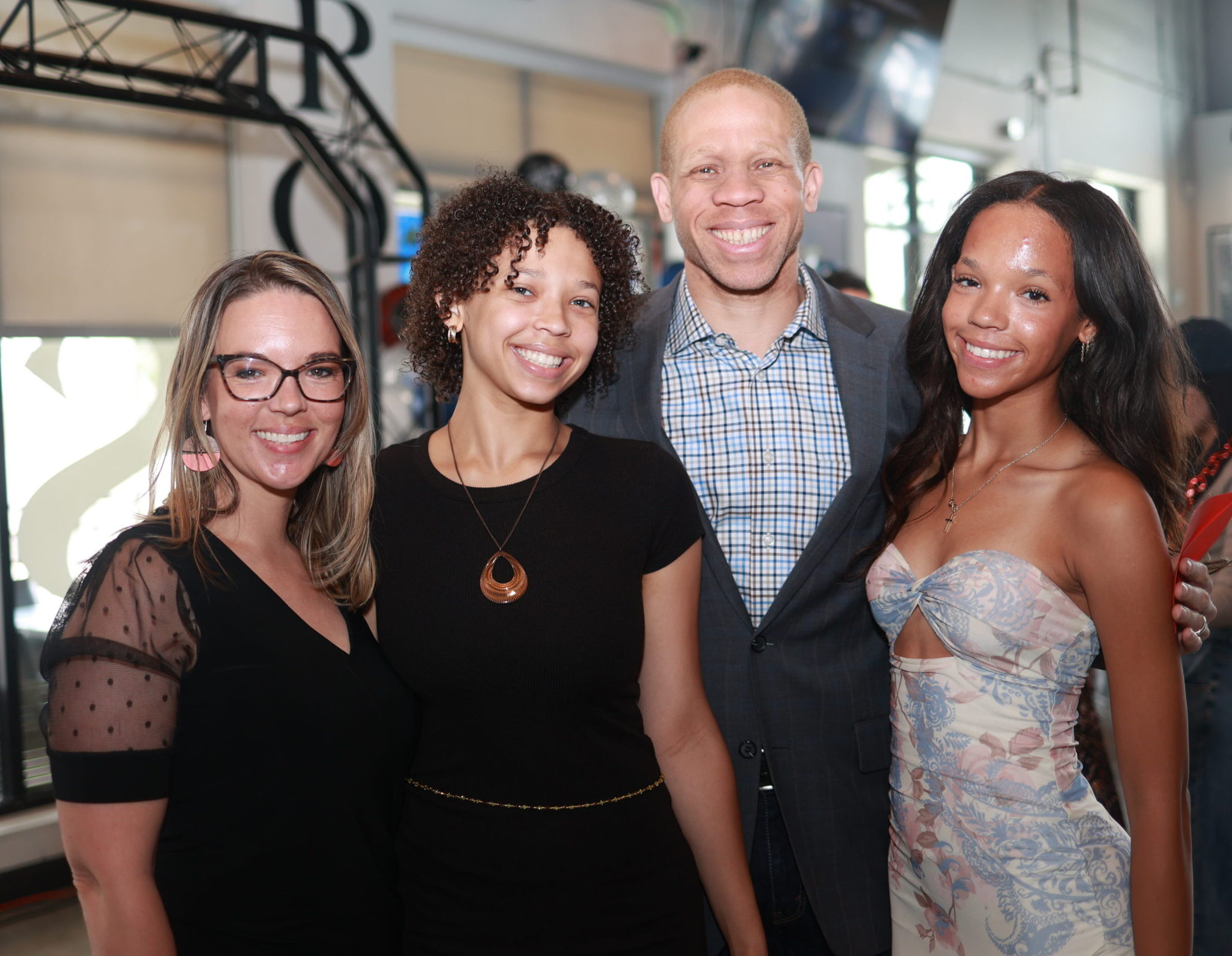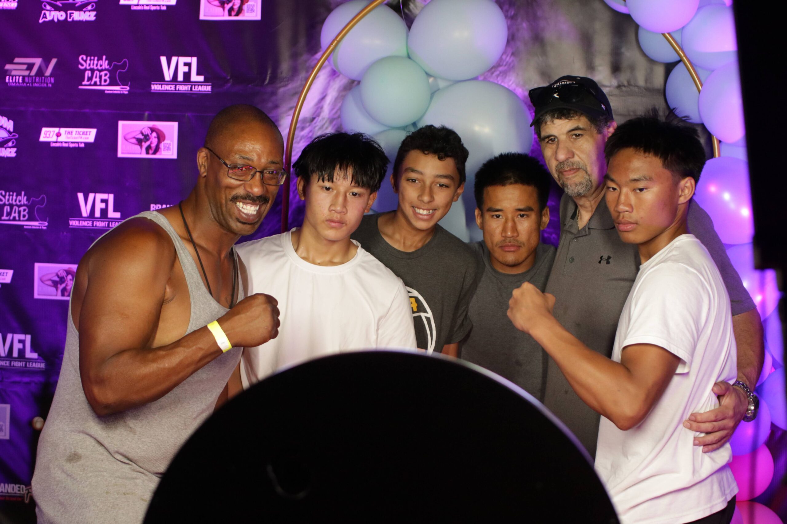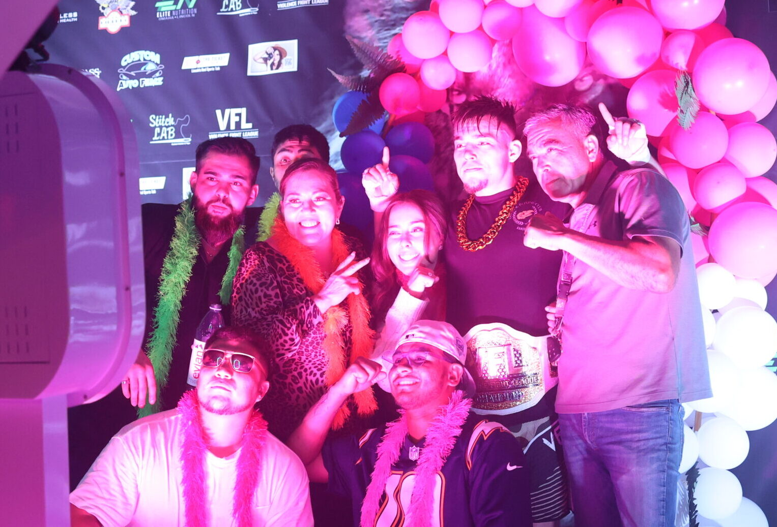 Champion and his family posing in front of photo booth